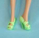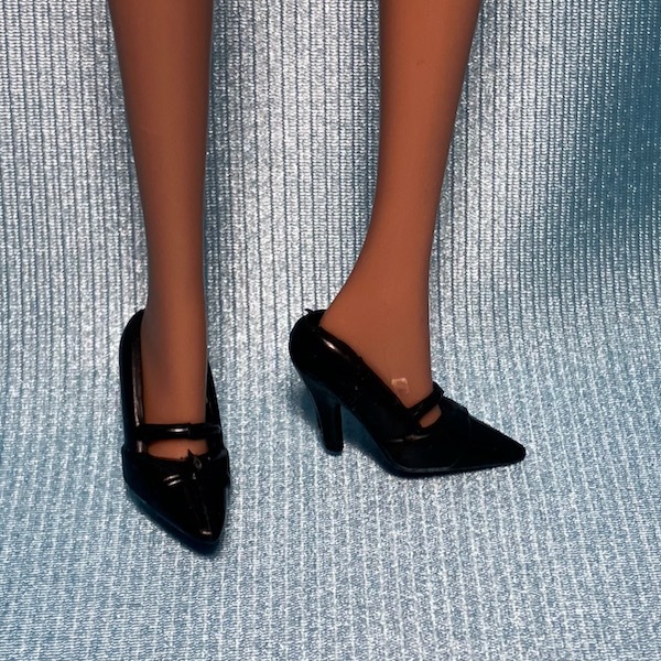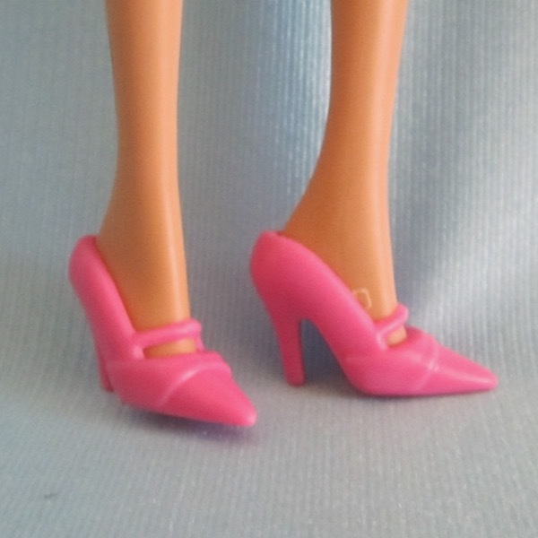 The shoes pictured here are for the dolls with the traditional pointed toe high heel foot. Some of the newer dolls on store shelves today have a larger flatter foot which will not fit into these shoes